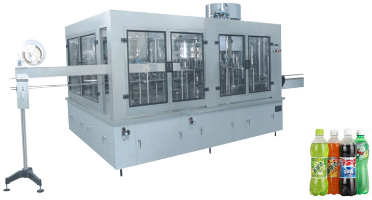 The series of machines are the integrated rinsig. filling and capping machine, suitable for filling various PET bottled carbonatd beverages.